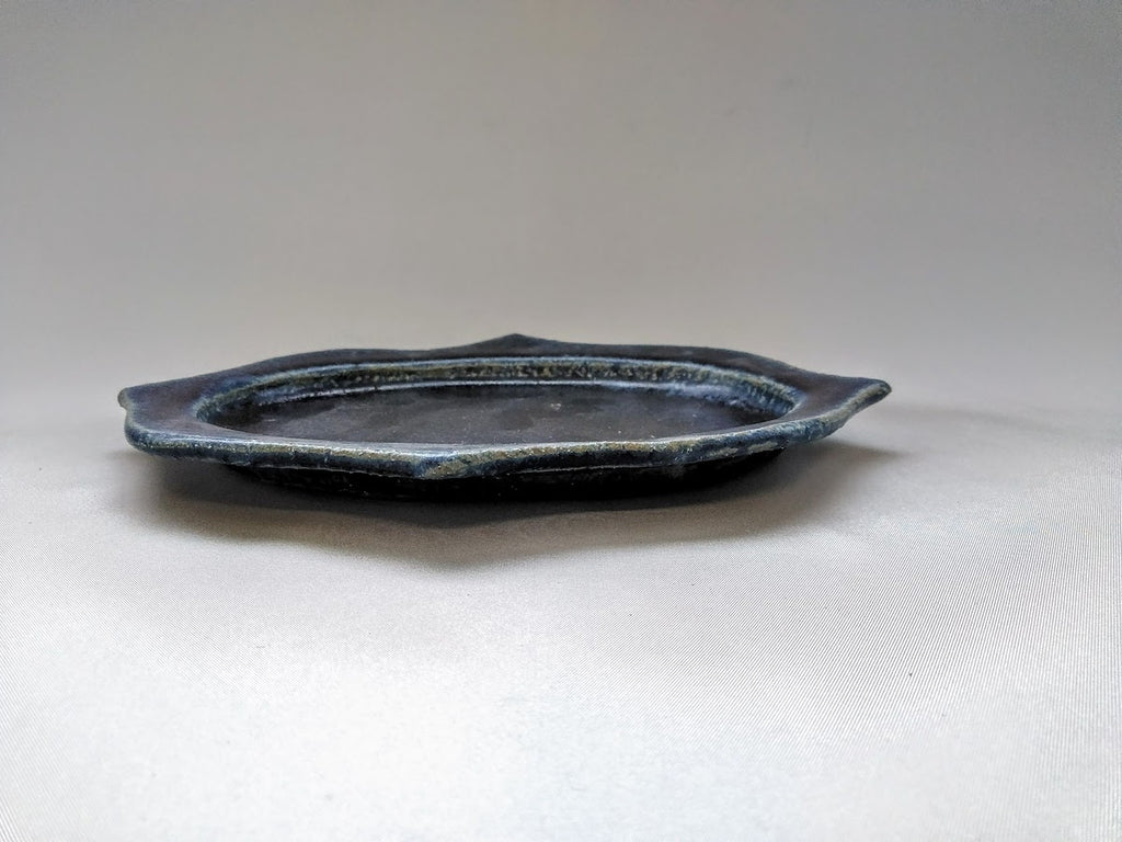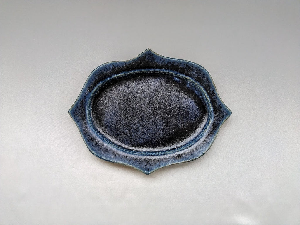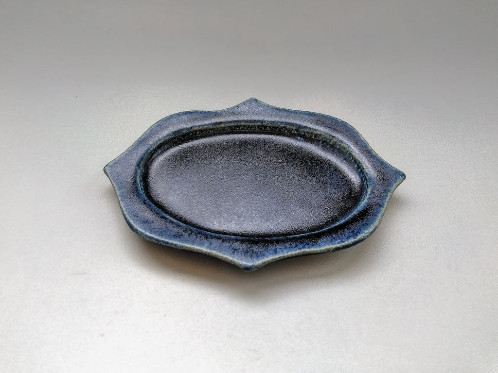 紺碧釉彫刻楕円プレート 小【山本一仁】
