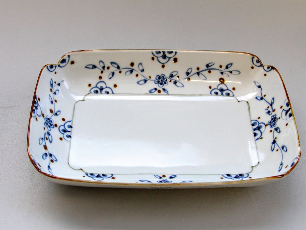 つる花唐草隅切り角オーバルボウル【徳七窯】