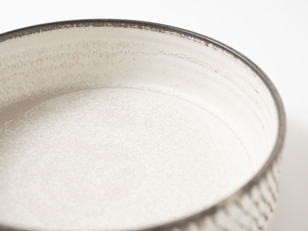 うつわの底部分は、テーブルなどに傷が入らぬよう、あらかじめ当店にて磨いてお届けしております。 ざらつきが気になるようでしたら、サンドペーパーで少し磨いてからご使用ください。