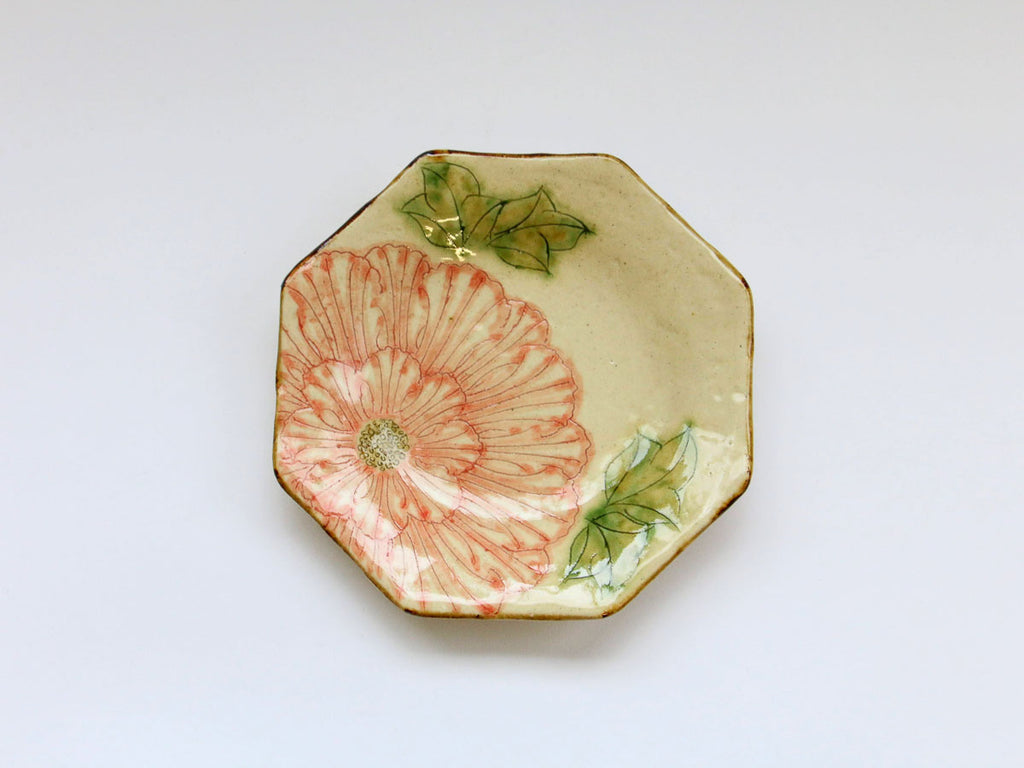 舞牡丹八角銘々皿【加藤芳平】